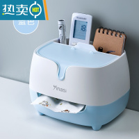敬平纸巾盒家用客厅茶几抽纸盒多功能简约遥控器收纳盒桌面创意纸抽盒 桌面纸巾盒-北欧蓝