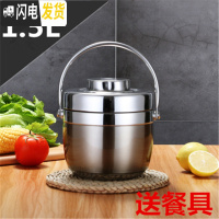 三维工匠手提304不锈钢保温双层提锅 6小时保温桶 1人2饭盒成人学生便当盒 304钢本色防溢1.5[送餐具]