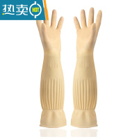 敬平加长洗碗手套防水胶皮塑胶加厚工作劳保耐磨厨房长款防水乳胶橡胶 本色加厚加长款45CM[过手肘] M