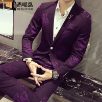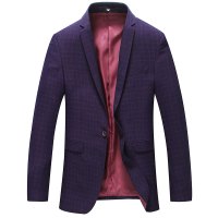 2017春秋季新款西装男 格子小西服 男士紫红色韩版修身西装外套男