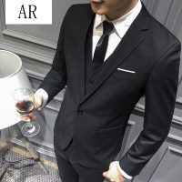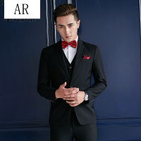 AR西服套装男士三件套商务正装职业小西装修身韩版伴郎新郎结婚礼服