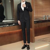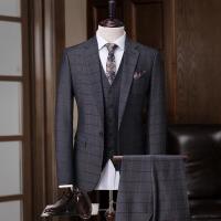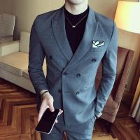 秋冬韩版双排扣小西装套装男士修身款青年商务休闲正装西服三件套
