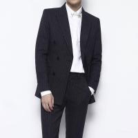 西服套装男士两件套秋冬修身韩版休闲条纹小西装伴郎新郎结婚礼服藏青色46/S码建议110斤内