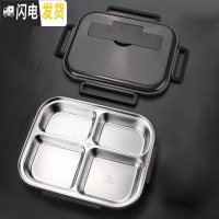 三维工匠304不锈钢饭盒大容量餐盘带盖密封分隔上班族打饭学生分格便当盒 黑色4格餐盒(不带餐具)
