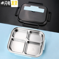 三维工匠304不锈钢饭盒大容量餐盘带盖密封分隔上班族打饭学生分格便当盒 蓝色4格餐盒(不带餐具)
