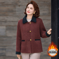 奶奶毛呢外套女士老年人新款冬装加绒加厚翻领上衣妈妈新中式呢子