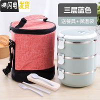 三维工匠日式保温饭盒不锈钢分格成人便当盒学生双层2三层保温桶多层餐盒 3层北欧蓝送餐具+红色圆柱袋