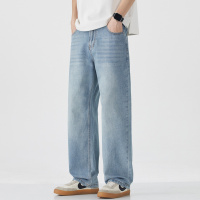 潮男街头穿搭牛仔裤 复古做旧阔腿款 垂感直筒 美式高街拖地长裤