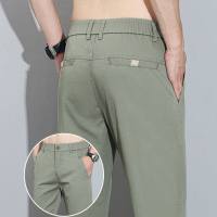 2026夏季薄款冰丝裤时尚休闲裤子宽松紧腰弹力直筒长裤子男款西裤