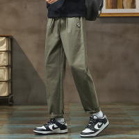 男士工装休闲裤 军绿抽绳直筒裤 春夏日系工装风裤子 松紧腰宽松