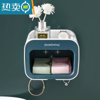 敬平创意肥皂盒壁挂式卫生间家用沥水香皂盒大号浴室置物架双层免打孔 蓝色