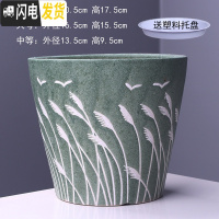三维工匠陶瓷花盆带托盘批发特大号创意室内阳台多肉吊兰绿萝花盆 2绿苇 大花盆容器