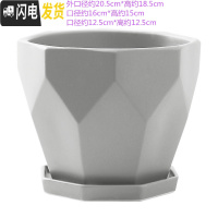 三维工匠陶瓷花盆欧式特大号家用多肉室内简约绿萝客厅吊兰带托盘 浅灰色228哑光浅灰 特大花盆容器