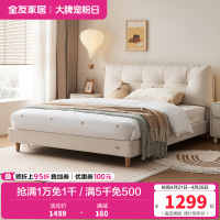 全友家居 简约现代板式床 木纹1.8米1.5米人造板床 卧室成套家具床 床头柜 床垫组合