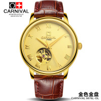 嘉年华Carnival瑞士正品全自动机械表 男士镂空防水真皮表带男表时尚薄型休闲时尚皮带腕表508L镂空