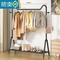 敬平简易晾衣架落地立式家用衣帽架卧室挂衣服架子网红晾衣器 ❤猫耳双杆❤130cm❤曜石黑❤ 大