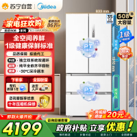 [自营]美的冰箱[真香系列]508嵌入法式多门60cm超薄零嵌入双系统底部散热冰箱BCD-508WUFPZM(E)星尘白