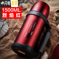 三维工匠保温杯男大容量保温壶便携304不锈钢水壶户外车载水杯子1.9 烈焰红1500