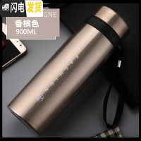 三维工匠保温杯大容量1000户外男士成人便携茶杯304不锈钢水杯家用 香槟金900
