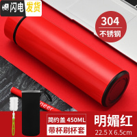 三维工匠智能保温杯男女士学生简约便携测温水杯子创意个性潮流大容量茶杯 明媚红+杯刷杯套