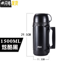 三维工匠保温壶不锈钢热水瓶家用户外旅行便携男女大容量保温杯2000 炫酷黑1500