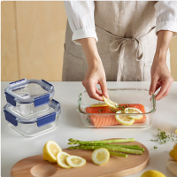 乐扣玻璃保鲜盒大容量冰箱微波炉饭盒分隔餐盒[750ML+1020ML+格子包]