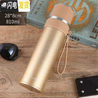 三维工匠子保温杯大容量1000便携男女学生茶杯子户外运动水壶刻字 香槟金810送杯刷杯套