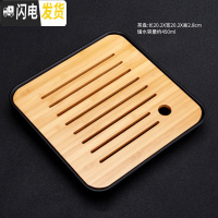 三维工匠茶盘家用实木托盘储水式不锈钢茶海抽屉式茶托盘茶台茶具套装 方缘干泡盘(黑)
