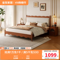 全友家居涟漪床中古风主卧室婚床家用家具实木床脚小户型双人大床