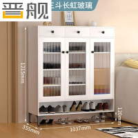 锦北家用钢制鞋柜带抽屉入户门储物柜大容量收纳柜-三门三斗长虹玻璃