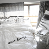 INS黑白全棉刺绣1.5M床单四件套网红女1.8米床笠被套公主床品