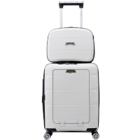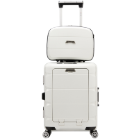 LUCKY CLUB 行李箱男女拉杆箱万向轮出差旅行商务密码多功能前置开口电脑高颜值 铝框主仓象牙白 24英寸子母箱
