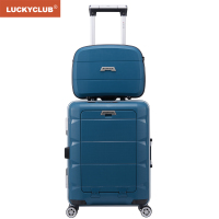 LUCKY CLUB 行李箱男女拉杆箱万向轮出差旅行商务密码多功能前置开口电脑高颜值 铝框主仓欧洲蓝 24英寸子母箱