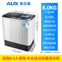 奥克斯5/7/8kg公斤洗衣机全自动家用小型迷你脱水甩干洗脱一体机 8.0KG半自动双桶
