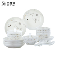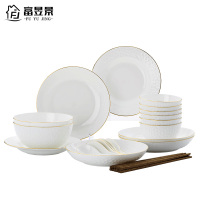 富昱景 欧式碗碟套装家用简约金边景德镇陶瓷骨瓷餐具套装碗盘组合 26件