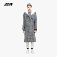 viishow呢大衣男格子可脱卸帽中长款韩版潮流冬季外套男