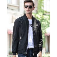 北极绒男士夹克2019秋季新款中青年商务休闲男士夹克纯色黑色外套