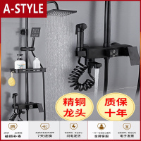 苏宁放心购黑色淋浴花洒套装家用全铜浴室淋雨喷头卫生间沐浴卫浴器洗澡龙头A-STYLE