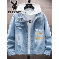 花花公子男士工装牛仔外套春秋季2024新款韩版潮流上衣帅气休闲夹克男