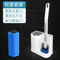 [苏宁自主品牌]百邻一次性马桶刷子无死角家用套装卫生间挂墙式洗厕所清洁神器带底座10个替换装