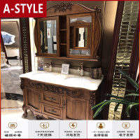 苏宁放心购(定制)欧式双盆浴室柜红橡木仿古卫浴柜实木洗漱台大户型洗手台镜柜整体A-STYLE