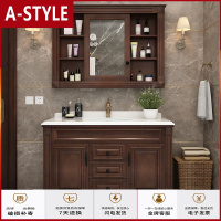 苏宁放心购(定制)卫浴美式橡木浴室柜组合落地洗脸盆池洗手台实木北欧洗漱台卫生间A-STYLE