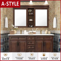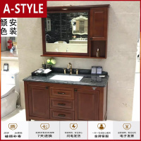 苏宁放心购(定制)卫浴中式红橡木浴室柜大理石美式洗手池面盆组合洗手间洗漱台实木A-STYLE