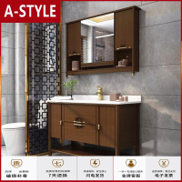 苏宁放心购(定制)新中式橡木浴室柜组合实木落地卫浴柜洗手池洗脸盆洗漱台大理石A-STYLE