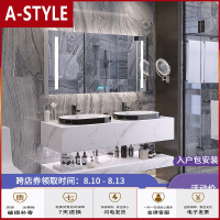 苏宁放心购轻奢双盆大理石台面浴室柜组合卫生间洗漱台盆洗手池洗脸卫浴岩板A-STYLE