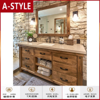 苏宁放心购北欧工业风岩板浴室柜实木loft复古民宿美式洗手面盆柜面池洗漱台A-STYLE