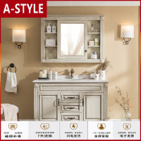 苏宁放心购美式复古浴室柜组合北欧实木落地大理石卫浴柜洗手台洗漱台洗脸盆A-STYLE