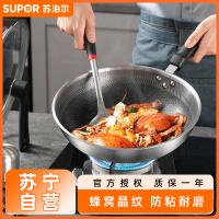 苏泊尔(SUPOR)304不锈钢蜂窝防粘锅不易粘炒菜锅煎锅燃气电磁炉通用34cm EC34JKC01