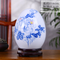 景德镇陶瓷花瓶摆件粉彩薄胎富贵蛋吉祥蛋现代中式家居装饰品 牡丹图 送底座