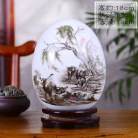 景德镇陶瓷花瓶摆件粉彩薄胎富贵蛋吉祥蛋现代中式家居装饰品 粉彩放牛图 送底座